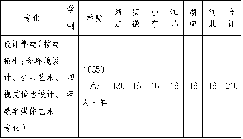 专业名称:设计学类;招生计划210名;艺术类分文理科的省份仅面向艺术类文科考生招生,不分文理科的省份不作文理科报考要求,分省计划如下: