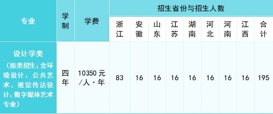 招生计划195名,艺术类分文理科的省份仅面向艺术类文科考生招生,不分文理科的省份不作文理科报考要求,分省计划如下: